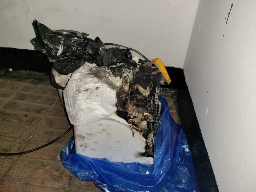 현장에서 제품은 회수한 상태로 사진상의 녹아내린 상태의 제품시료만 보관중입니다. (모터부에서 발화했을것으로 추정)